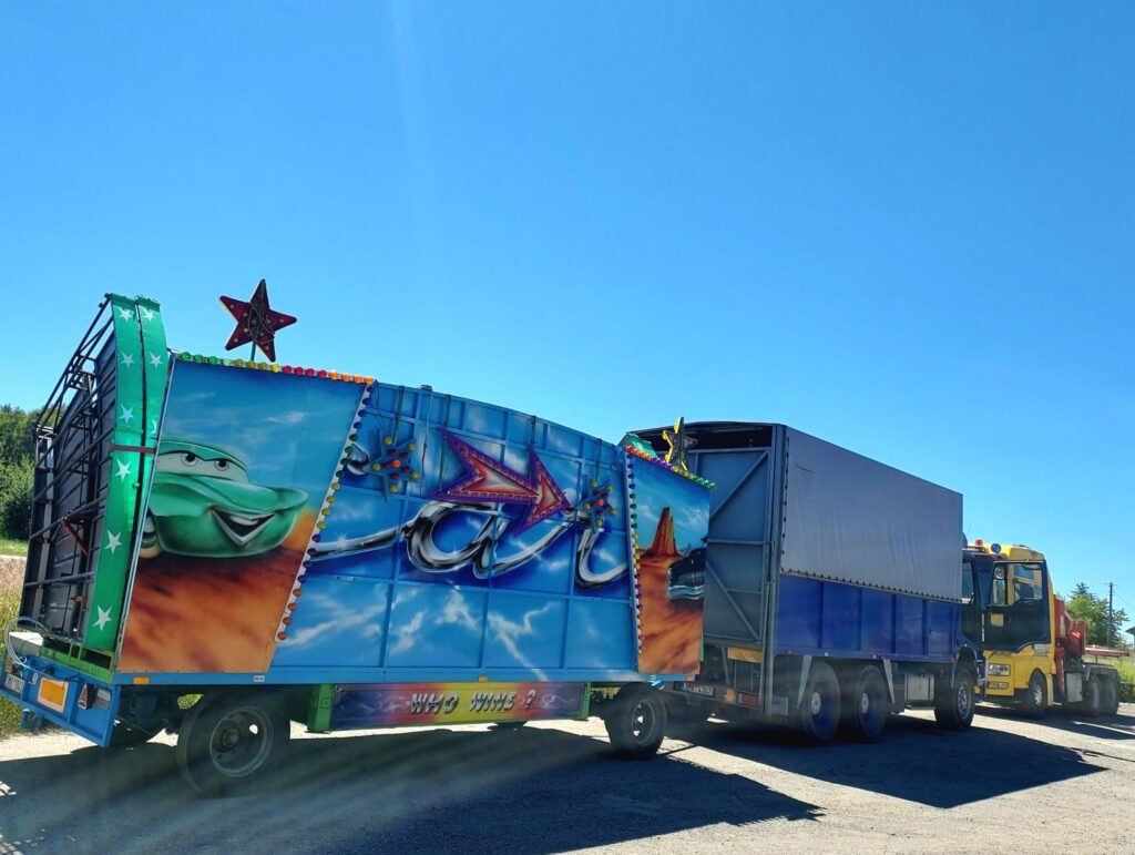 Nasze pojazdy i załoga były w gotowości praktycznie przez całe lato. Jednym ze zleceń był rozładunek przyczep w Rzezawie, realizowany dla naszych sąsiadów – firmy DMC Trailers. Współpraca między lokalnymi firmami przynosi efekty – cieszymy się, że mogliśmy być częścią tej operacji.